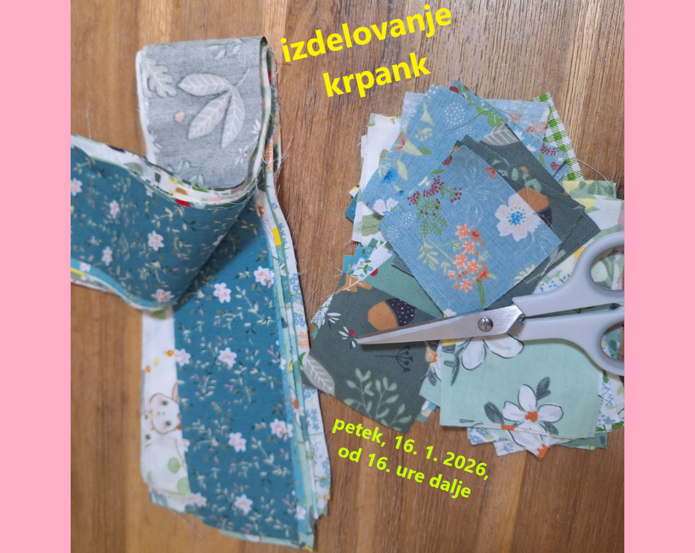 V društvu bomo izvedli ustvarjalno delavnico IZDELOVANJE KRPANK. Iz malih koščkov blaga, bomo poskusili ustvariti predmet, ki bo prijeten za naš dom. Za malo bolj pogumne, pa bomo pokazali, kaj vse lahko ustvarimo iz preprostih ostankov blaga.