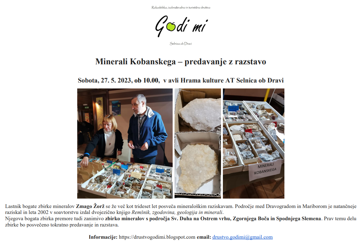 Lastnik bogate zbirke mineralov Zmago Žorž se že več kot trideset let posveča mineraloškim raziskavam. Področje med Dravogradom in Mariborom je natančneje raziskal in leta 2002 v soavtorstvu izdal dvojezično knjigo Remšnik, zgodovina, geologija in minerali.