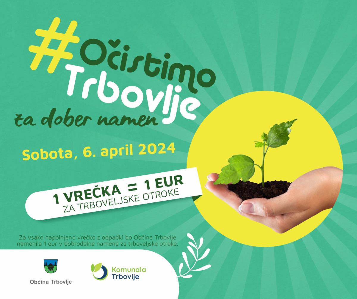 Na dan čistilne akcije, 6. aprila 2024, bodo lahko občani od 9. do 12. ure material za čiščenje (rokavice, vreče za smeti) prevzeli na treh lokacijah po mestu: Zavod za mladino in šport Trbovlje, Občina Trbovlje, PGD Trbovlje – mesto.