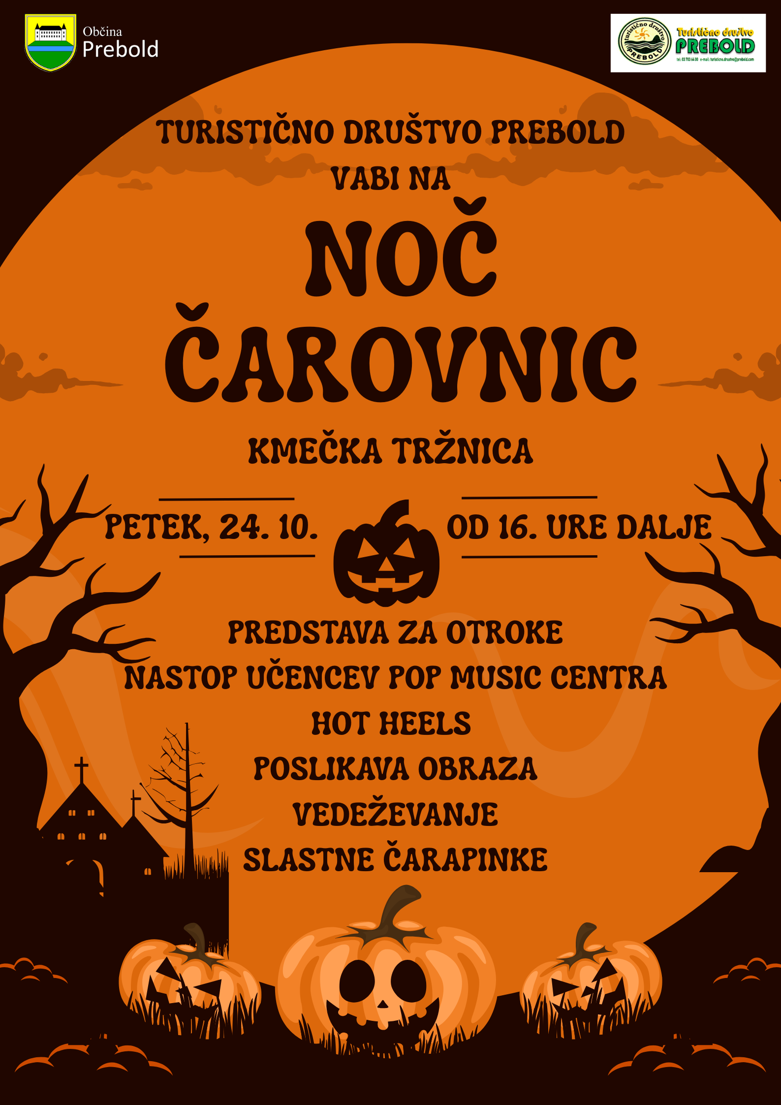 Vabljeni na strašenje in čarovniške vragolije. Za vas bomo pripravili slastne čarapinke, otroško predstavo in glasbene nastope, malih in velikih. Z nami bo tudi Pop Music Center.