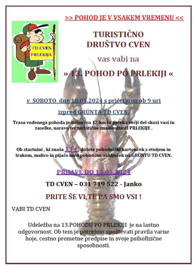 » 13. POHOD PO PRLEKIJI « >> POHOD JE V VSAKEM VREMENU <<